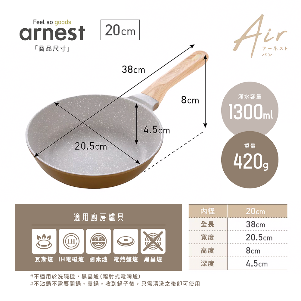 Arnest Air iH大理石塗層超輕量平底鍋_20cm [78237]