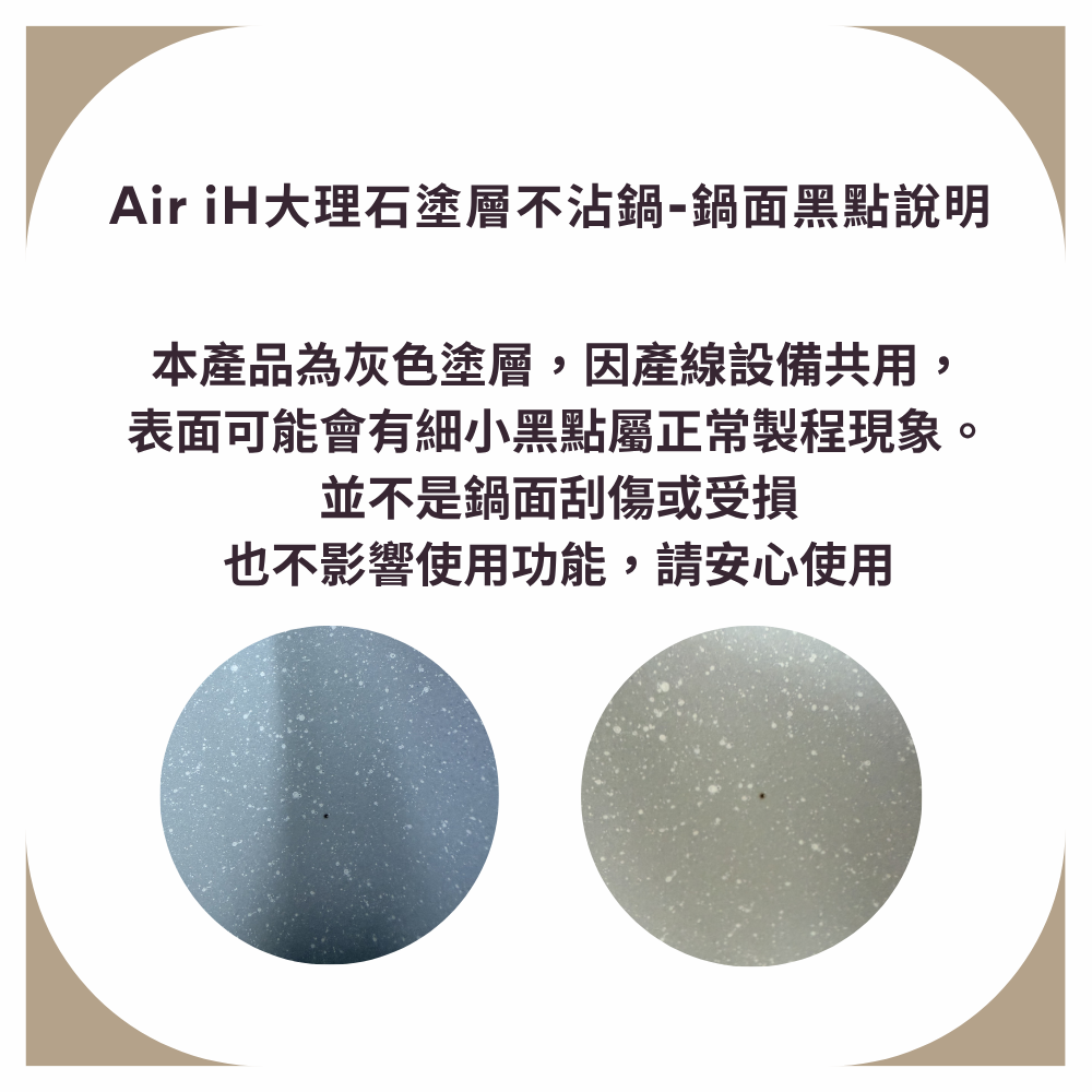 ✦本產品為灰色塗層,因產線設備共用,表面可能會有細小黑點屬正常製程現象。並不是鍋面刮傷或受損,不影響使用功能,請放心使用